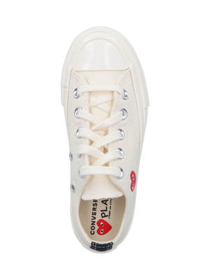 Boys > Shoes Comme des Garons PLAY Low Top "Converse Chuck 70" white cotton sneakers featuring a round rubberized toe, lace closure, side logo2 print, red heart print, and back rubberized logo2 label. Composition: 100% Cotton.