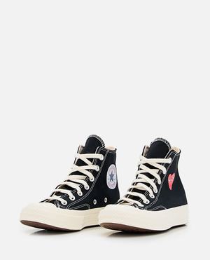 Unisex > Shoes > Sneakers Lace-up closure. Canvas upper. Rubber sole. Features the signature Comme des Garons red heart design. Color: black. Composition: 100% Cotton.