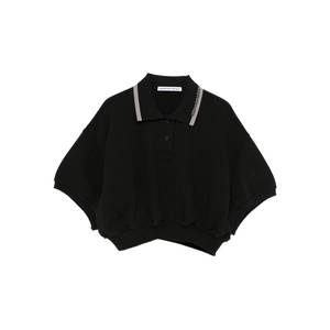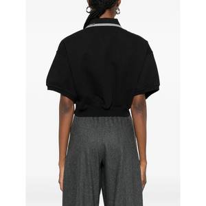 Women > Clothing > Topwear > Polo Shirts Black polo shirt with a collar, short front button fastening, short sleeves, an elasticated hem, and logo2 detail.