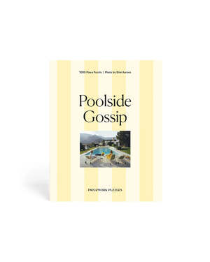 The Slim Aarons Poolside Gossip 1000 Piece Puzzle by Piecework Puzzles features Slim Aarons' best-known photograph. 'Poolside Gossip' is widely revered as the quintessential image of midcentury style and design. Packaging features a show-stopping cabana stripe. Piecework teamed up with Getty Images to bring you a new sunny collectsion of puzzles featuring the iconic photos of Slim Aarons. - 1000-piece jigsaw puzzle - Completed puzzle is 19.25 x 26.6 inches - Box is 8 x 10 x 1.8 inches - Thick stock and high-quality art paper - Not suitable for children - Puzzle board crafted with recycled paper - #PZ-POOLSIDE-1000