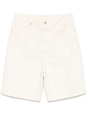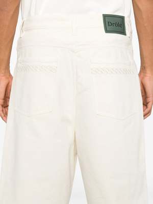 Le Short Baggy in ecru features a button fly, belt loops, classic five-pocket styling, and a rear logo2 patch. Made from 100% cotton. Machine washable for easy care.