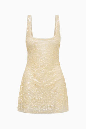 The Ciris Shell Bead Mini Dress from LoveShackFancy captures an oceanside, beach-ready vibe, perfect for warm-weather getaways. Designed from lightweight nylon with shell sequins applied in diagonal strips to mimic the movement of the tide, this body-con mini dress features a simple scoop neckline and a fitted silhouette. Fully lined for comfort, the dress zips at the back and offers a delicate, airy look thats effortless to wear. Runs small, we recommend sizing up one size for intended fit. Composition: 100% Nylon Color: Shell Fit & Measurements (Size 4): - Length: 31" - Bust: 33" - Waist (Relaxed): 28 3/4" - Sweep (Straight): 44"