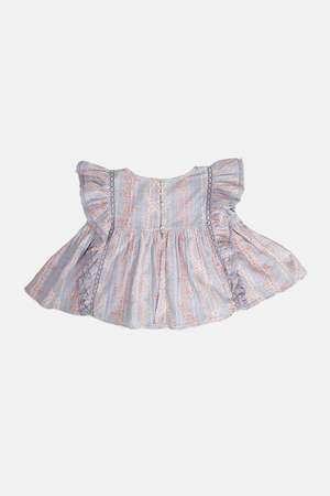 Achieve the perfect mommy and me style with this adorable kids' version of LoveShackFancy's Flutter Sleeve Top. Crafted from soft cotton with pintuck detail and pom pom trim, featuring a butterfly open back with three button closure. Color: Cobblestone 100% Cotton Made in India.