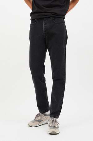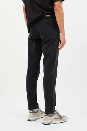 A regular with a tapered leg and an anti-fit cut, made from 100% cotton denim fabric. Mid Regular/Tapered 5 Pockets Button fly 100% Cotton