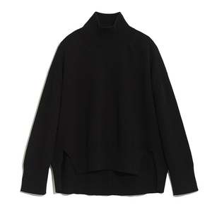 Round neck cashmere pullover with a wider fit and side slits to accentuate a drapped back panel and finished with rib knit detailling. Composition : 100% Cashmere Made in Scotland.