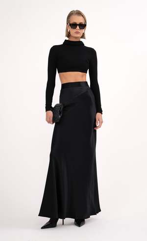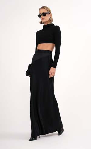 The Lara Maxi Skirt defines true elegance. It is crafted from our silky, luxe fabric, which beautifully drapes down to the floor. It is a versatile piece that can be paired with structured tops for a chic and modern look. Fit measurement Model is wearing size XS. Runs true to size. Material care 73% Acetate, 27% Polyester