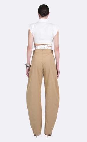 The Terry Crop is a sleeveless, wrap-style crop top with an adjustable belt detail. Made from a soft yet structured cotton, it features a crisp collar and defined shoulders. Type: Crop Top Fit measurement Model wears size small. Runs true to size, runs cropped. Model is 5'8". Material & Care 100% Cotton. Dry clean only. Made in Colombia.