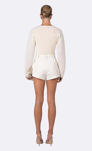The Zehra Shorts are chic mini shorts featuring monochromatic black stud button details along the waistband. A modern twist on a timeless wardrobe staple, these shorts add a subtle yet stylish edge to any look, perfect for effortless day-to-night styling. Type: Shorts Fit measurements: Model wears size XS. Runs true to size. Material care: Dry clean only.