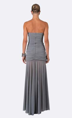 The Elodie Dress is the definition of elegance. Designed strapless with a ruched mini underlay, it flows into a sheer draped maxi for a striking silhouette. Effortlessly flattering and confidence-boosting, it ensures youll be the best dressed at any black-tie event. This is a dress style. Fit: Model wears size small and is 5'11". Runs true to size. Care: Dry clean only.