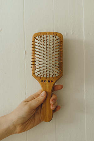 Environmentally friendly hair brush made out of bamboo wood, with no animal hair! This hairbrush has large wooden bristles which help to naturally condition your hair, and evenly distribute your hairs natural oils. The bristles are also gentle and durable. Since they are wide, they are less likely to break the hair when combings. Plus, they dont produce any static compared to synthetic brushes and combs! Wooden bristles feel like little massaging fingers on your scalp and will help increase circulation on your scalp, bringing nutrients to the hair follicles. Bamboo is super solid and resistant, which is essential for beauty accessories, and it is also lightweight. Bamboo is also a natural antibacterial, which is perfect for accessories that are used often. Bamboo is also a more sustainable option because it regrows easily after harvest, even in damaged and poor soils!