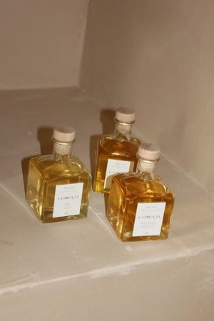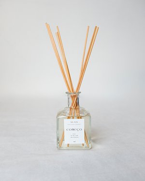 Hand-blended reed diffusers in glass bottles. Comeo No. 1 notes of rose, fresh earth, and mineral water. An aromatic portrait of a secret garden after a warm spring rain. Sparkling drops of water roll off the petals of roses in heavy bloom, occasionally catching the light. The soil below is soft and damp, perfuming the air with the scent of the earth and the roots of the vegetation. Comeo No. 2 notes of vetiver, hinoki, and cypress. A scent to accompany you into the woods. The sun sets behind a forest treeline, softly illuminating the silhouettes with a deep golden glow. Warm heartwoods, fresh cypress needles crushed underfoot, and drops of liquid resin create a meditative fragrance that embodies this space. Hand blended with premium fragrances and essential oils in our studio in Richmond, VA. Each diffuser consists of 7 oz / 210 ml of fragrance oils.