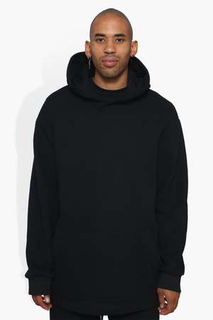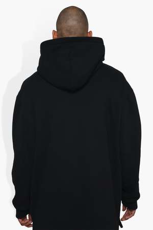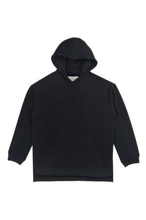 Slightly over-sized, heavy brushed fleece hoodie. 75% cotton / 25% polyester. Heavy Brushed Fleece. 372 GSM. Made in Los Angeles. Model is wearing a medium.