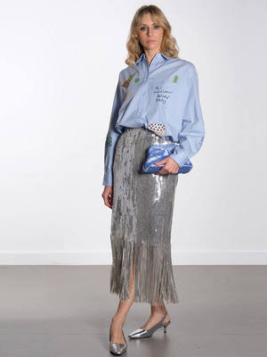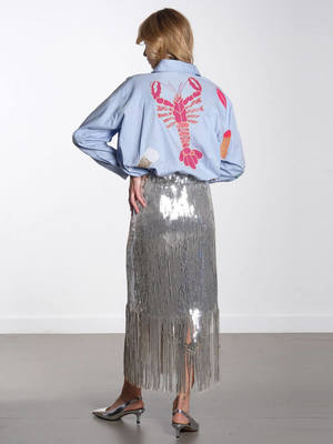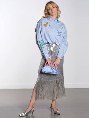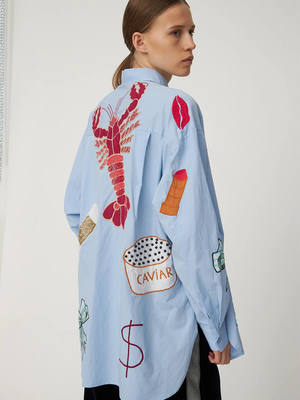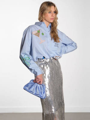 Make an impact with this playful, hand embroidered shirt from Stella Nova. Featuring fun, embellished embroideries including a lobster, caviar and a cocktail, what better way to dress for the party season. Featuring a pointed collar, button-up front and long sleeves, let the shirt do the talking with a pair of tailored trousers or denim and pointed heels. Products ["gid://shopify/Product/7459396124737","gid://shopify/Product/7351485890625","gid://shopify/Product/7451058503745","gid://shopify/Product/7448194908225","gid://shopify/Product/7454577000513"] Title tag Stella Nova - Bead Embellished Shirt - Dust Blue Google product category 212 Details - Embroidered shirt - Pointed collar - Button closure - Long sleeves - Button cuffs - Oversized fit Fabric care Composition: 100% Cotton. Care: Hand wash only. Iron inside out on a low heat. Do not tumble dry.