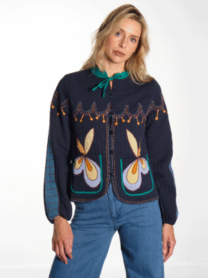 Experience the enchanting charm of the Stella Nova Little Embroidered Jacket, featuring a contrast scalloped neck edge, wide sleeves and vintage-style embroidery. With a button fastening, quilted cotton twill fabric and two front pockets, this one-of-a-kind design adds a touch of whimsy to any outfit. Details - Embroidered quilted jacket - Contrast scallop tie neck - Wide, long sleeves - Button fastening - Two front pockets - Boxy fit Fabric care Composition: 100% Cotton. Care: Dry clean only.