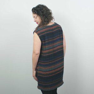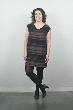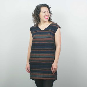Weave is medium weight to give this simple tunic a little structure. Cat (5'3", XS) wears her usual size and Chika (5'6", L) sized up. 67% cotton, 30% polyester, 3% spandex Wash cold and hang or lay flat to dry. Made in Montreal.