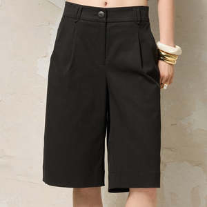 Bermuda shorts with a slightly dropped waist and a fly closure. They feature wide legs and pointed belt loops. For the pants version, see our THE CHAIN model. Details: - Slightly dropped waist - Zip fly - Pointed belt loops - Side pockets - 23" long Available in blue or black (separate listing). Fabric: 49% Cotton, 48% Lyocel, 3% Spandex. Made in Montreal.