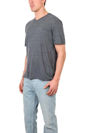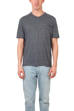 Our most coveted high-end tee style, every summer and all year long, this V::ROOM tee is a slight V, not too deep. Fabricated in Japan from a truly unique fabric composition, the melange style has an extra soft hand with a bit of "fluff" to it. It is a true premium tee. - Color: Charcoal (new color!) - 55% Cotton 45% Nylon - Made in Japan - Machine Wash cold - Style #: 081550-SA * Model is 6'1'' wearing a size L Productcode VRMS4-18 Designer V::ROOM