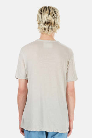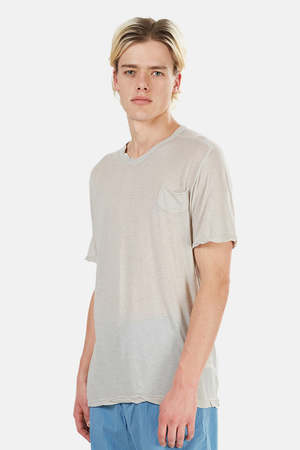 Crafted in Japan from a truly unique fabric composition, this melange style v-neck has an extra soft hand with a bit of "fluff" to it. It is a true premium tee. - Color: Light Grey - Single chest pocket - Fabric: 55% Cotton 45% Nylon - Made in Japan - Machine wash cold * Model is 6'1" wearing a size up in L for loose fit Productcode VRO1 Designer V::ROOM