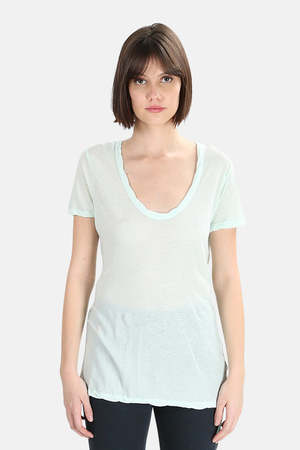 - Color: Mint - Ultra soft jersey fabric - Wide U neckline - Tunic length - Relaxed fit - Back vent detail - 55% Cotton 45% Nylon - Made in Japan - Hand wash cold * Model is 5'9" wearing size S Designer V::ROOM