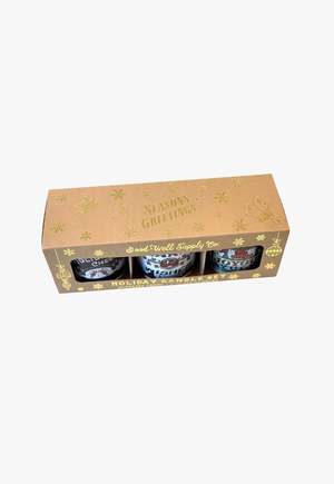 The Seasons Greetings holiday gift set includes three 3.5 oz mini soy candles - Holiday Cheer, Warm Wishes & Joyous Yule - all packaged together in a gold foil kraft box set and ready for gifting! These mini sized candles are perfect for small spaces, for your desk or for trying new scents. The 3.5 oz mini candles are hand-poured into paint cans making them travel friendly, too! Holiday Cheer Mulled Cider - Spicy scent blend of apple & mulled fruits, cinnamon sticks, brown sugar & vanilla. Joyous Yule Crackling Fireplace - Festive, warming blend of oak ash, crackling wood and swirls of smoke. Warm Wishes Hot Cocoa - Warming blend of cinnamon, hot chocolate, nutmeg and vanilla. Never leave burning candles unattended. Keep them within sight at all times. COMPOSITION Soy wax SIZE & BURN TIME Candle volume: 3 x 3.5 oz Burn time: Approx. 20 hrs per candle/60 hrs combined ABOUT GOOD & WELL SUPPLY CO