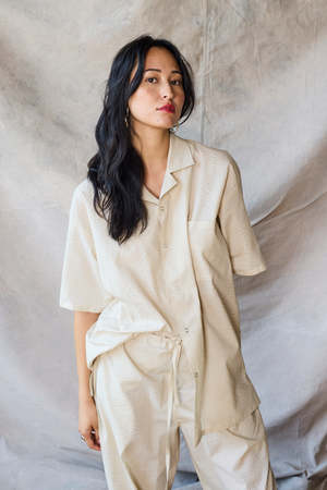 Relaxed fit trousers with a drawstring waist cut in ultra-lightweight Japanese cotton. The Drawstring Trousers feature a unique front tie closure, adjustable fit, French seams, and in-seam pockets. This season features a uniquely textured Japanese "miracle-weave" cotton that is incredibly breathable, perfect for summer humidity.