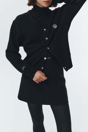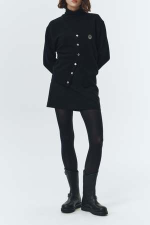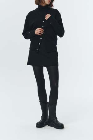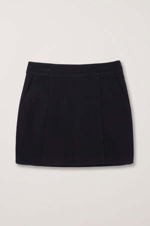 Dunst woven mini skirt in black. 68% polyester, 22% rayon, 8% wool, 2% polyurethane. UDSK5C205BK