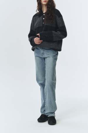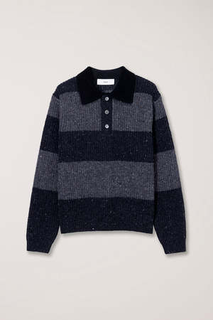 Dunst unisex collared chunky ribbed rugby knit sweater in grey and charcoal grey. 50% wool, 25% polyester, 25% nylon. Style code: UDSW5C114G2.