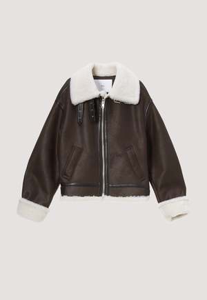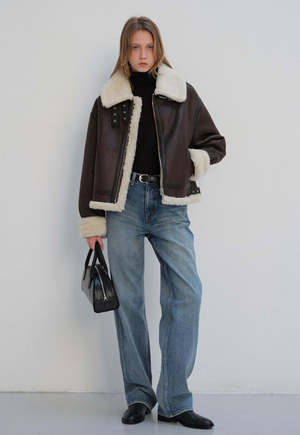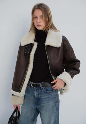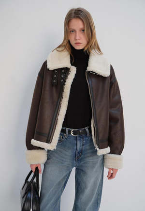 Sherpa lined vegan leather jacket. Featuring buckle tabs with a spread collar, zip closure, and cuffed sleeves. COMPOSITION Shell: 100% Polyester Lining: 100% Polyester SIZE & FIT Unisex ABOUT BY DUNST Dunst is engaged in various fields such as fashion, architecture, photography, graphic and content planning. It is a design studio made by young artists in their 20s and 30s. Dunst which means immaterial, goes beyond the boundaries of gender, focusing on emotional design in harmony with contemporary culture and millennial generation. Looking for special things in everyday life, inspired by real street-scene, complete the classy streetwear with re-editing.