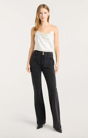 The Dahlia Long Dorothea Jeans by Cinq Sept are a stylish staple featuring two buttons on the front and convenient front pockets. Designed for casual wear, this denim piece offers both comfort and a timeless look perfect for everyday outfits. - Zipper fly and double button closure - Pockets at front - Full length - Fabric: Denim - 99% Cotton, 1% Spandex - Dry clean only - 34" inseam - Measurements from size 4 - Type: Pants
