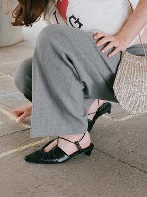 Handmade in Elche, Spain. Half heel, half mule. But 100%, the best going-out shoe you'll own. Strap up this low-heeled strappy mule and brace for compliments.