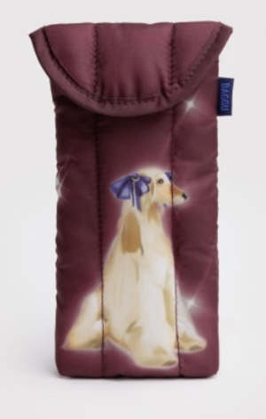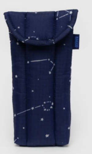 The Puffy Glasses Sleeve cushions your glasses like a protective cloud and makes them easy to find in your bag. - Magnetic flap closure - Measures 7" 4" " - Recycled ripstop nylon, recycled PET polyfill - Machine washable