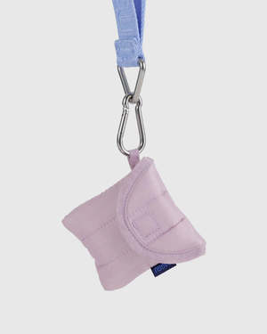 A quilted home for your earbuds, lightly padded to protect them from scratches and dirt. - Keychain loop - Velcro flap closure - Measures 3" 2 " - Recycled ripstop nylon, recycled PET polyfill - Machine washable