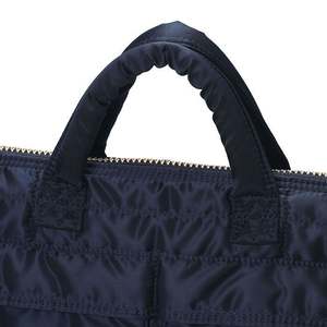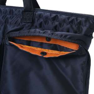 This is the "TANKER" series, which is synonymous with PORTER and was announced in 1983. It uses an original 3-layer fabric developed with the motif of the US Air Force flight jacket "MA-1". The 3-layer fabric of nylon twill (front) + polyester cotton (middle layer) + nylon taffeta (back) is very light, and the soft feel of the bonded material and the bright rescue orange on the back are attractive. This series is filled with the meticulous attention to detail of Yoshida bag craftsmen in every step of the process, from cutting to sewing and parts. It comes in three colors: black, sage green, and iron blue, and the back is a bright rescue orange. In addition, aluminum zippers, which were rare at the time of the product's release, are used, and the paint on metal fittings such as snap buttons and eggplant rings is deliberately made to peel off so that they will show signs of aging as they are used. This is a 2WAY helmet bag, which is one of the typical military bags. The gusset is thin when you don't have anything in it, but the bottom gusset expands when you put something in it, so it has more storage capacity than it looks. It is also equipped with a large front pocket with a gusset that can store various items, making it highly functional and has a high storage capacity. Number of pockets Exterior: 2 Interior: 4 * All models come with original pouch. - Black nylon - Two top handles, detachable shoulder strap - Front snap and Velcro-fastening pockets, back zipped pocket, appliqud designer emblem - Internal zipped and Velcro-fastening pockets - Snap fastening - This bag has a capacity of approximately 10 litres - Made in Japan size: W:480mm/H:520mm/D:0mm weight: 495g material Front: Nylon twill (Polyester cotton bonding processing) Lining: nylon taffeta