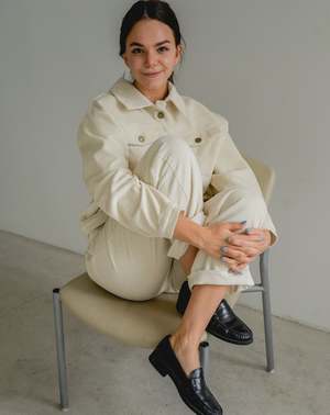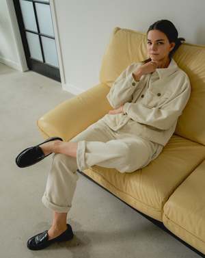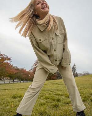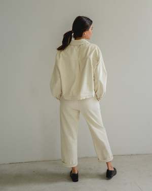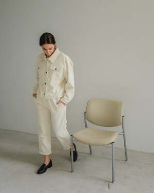 The cord jacket is designed with a boxy, slightly cropped fit that appears structured but is actually so cozy soft. The perfect WFH outfit - truly you could take a nap in this. Made from 100% cotton. Elasticated waistband and pockets, of course. Ethically and sustainably made in China. Care instructions: Hand or gentle wash cold, hang to dry. Materials: 100% Organic Cotton.