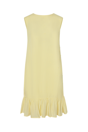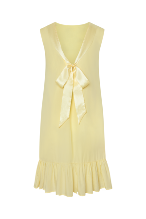The Claire Dress by Snderhaus is crafted from fluid, breathable TENCEL that skims the body with soft structure and subtle shimmer. It features a high neckline and cap sleeves for a chic look, while the low scooped back and satin ribbon tie add a romantic touch.