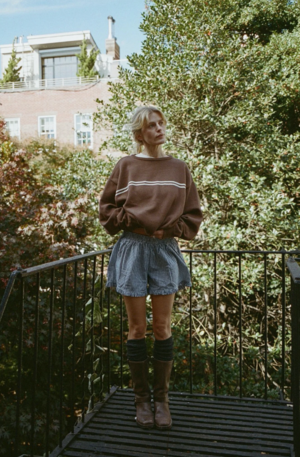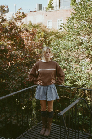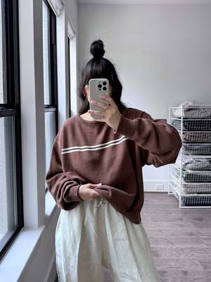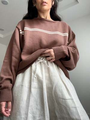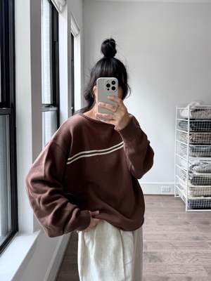 At Snderhaus, they take pride in creating timeless pieces that resonate across generations. From the beginning, prioritizing sustainability and ethical practices has been a driving force for the founders. The brand only uses factories who embody their same values of sustainability and ethics. They craft their garments using natural fibers that can be recycled or composted after years of love and repair. When necessary to the construction or nature of the garment, the brand uses recycled polyester to help reduce the waste created by the fashion industry. Based in Utah. This top will 100% will be mistaken for a vintage sweater. In the perfect stolen-from-the-back-of-your-dad's-closet fit. - Brown color - 100% Organic cotton - Loose fit - Boxy cut - SKU #SOB5151 Please note, measurements are provided to serve as a guide. We are not able to guarantee each garment's measurements as there are slight deviations due to the handmade nature of our designer's garments.