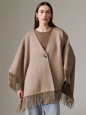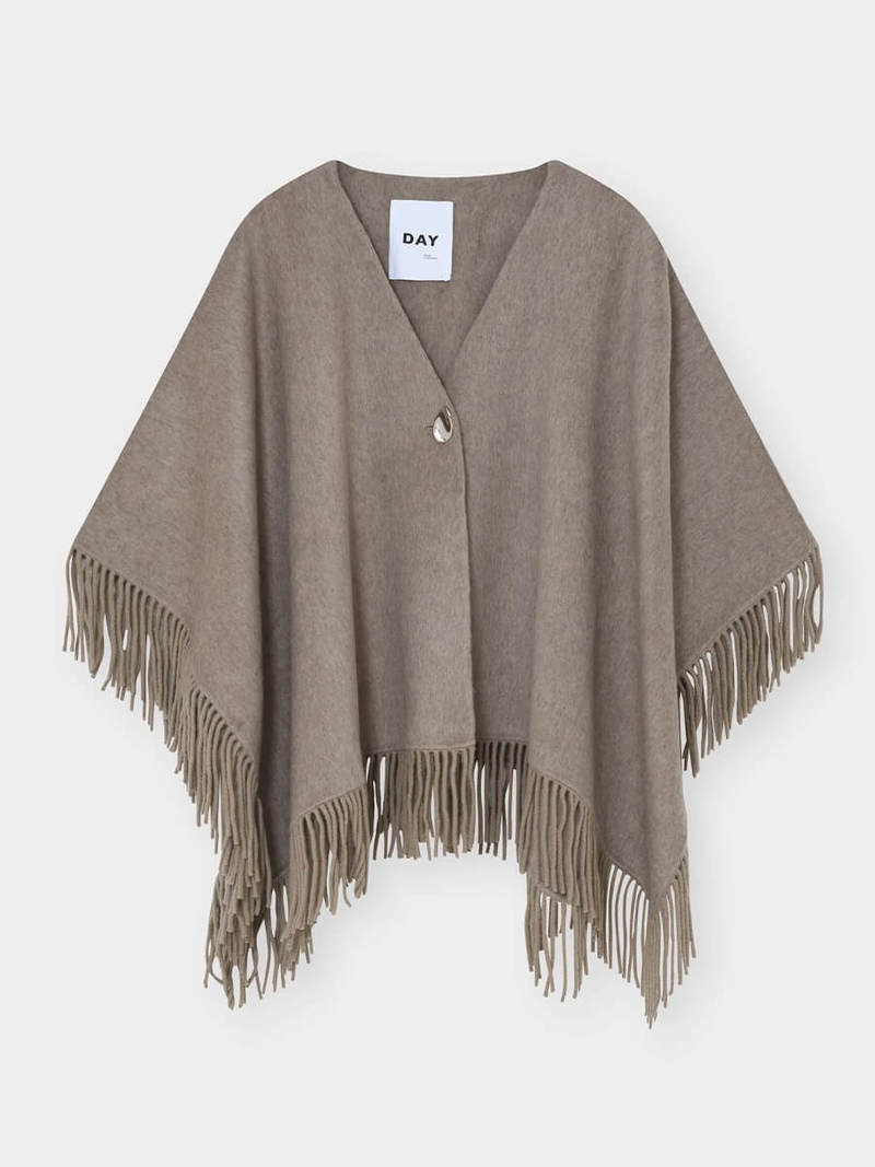 The Sybil Fringes Wrap by Day Birger et Mikkelsen is a timeless outerwear piece crafted from double-faced wool, offering effortless elegance with a relaxed silhouette. Soft fringe detailing adds subtle movement, creating an understated yet statement finish. Perfect for layering through the cooler seasons and pairing with jeans and chunky boots. Details - V-neck wrap - Long sleeves - Open front design - Relaxed fit - Button closure - One size Fabric & Care Composition: 50% wool, 50% polyester.