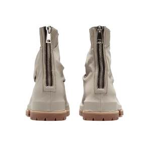 These low boots are from 424 new collectsion. The low boots, here in grey, are made of leather and feature a double lycra upper with wrinkled effect, a rubber sole and a zip closure at back. Composition 100% Leather - details 100% Lycra - sole 100% Rubber Manufacturer id 32424Q08 226099 Made in Italy Color Grey Season S / S2022 Code 11014
