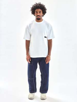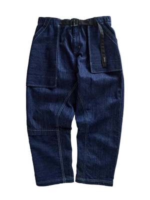 The Field Pant in denim from Earth\Studies, based in Portland, Oregon. Details A deconstructed study in brutalist architecture, French workwear, and S.T.S.-era spacesuit design. Patterned around the shapes of human bodies in motion for terrestrial excursions and inner discovery. Fit - Four-dimensional patterning enables fluid mobility - Oversized fit; roomy through hips, thighs, and calf - Model is 61 and wearing a size 34 - Tall sizes add 5" to outseam length (noted with "T") Notations - Three pockets; back pocket features snap closure - Two additional interior mesh pockets - YKK zip fly with snap closure - Built-in webbings belt with aircraft aluminum hook closure - Accessories loop at rear waist - Clean-finish interior seams - 100% cotton - Made in Jaipur, India - Type: Denim