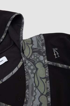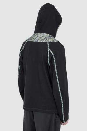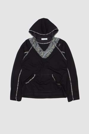 The Gizi Hooded Top is a regular fit sweatshirt featuring a multi-panel collar, a jersey-lined hood, curved sleeves, and kangaroo pouches. It is detailed with embroidered eyelets and contrast binding throughout, and is cut from a midweight cotton jersey.