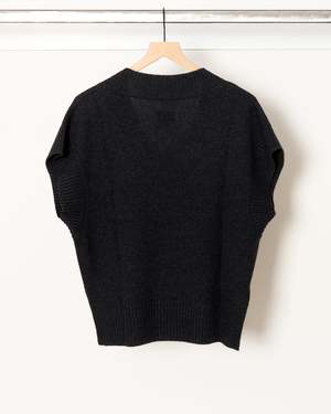 Effortlessly cool with a nostalgic edge, this boxy V-neck sweater vest from Jamie Haller in charcoal channels a refined 70s sensibility. Designed with a relaxed structure, it layers beautifully or stands confidently on its own. - Boxy silhouette for an easy, modern shape - Deep V-neckline for flattering proportion and versatile styling - Soft, substantial knit with a cozy yet polished feel - Designed to wear solo or layered over coordinating cashmere basics - A timeless piece that balances vintage inspiration with contemporary restraint 70% Wool, 30% Cashmere. Imported.