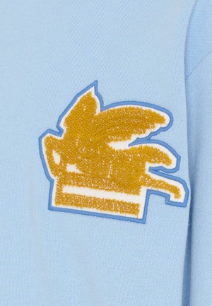 Boys > Clothing > Topwear > Sweaters & Sweatshirts Light blue sweatshirt, made from brushed cotton, with long sleeves and ribbed cuffs, hemline and neckline; it is embellished with ochre towelling and white felt patch shaped like iconic Pegasus, with blue embroidered trimming. 100% Cotton. Machine wash at 30C.