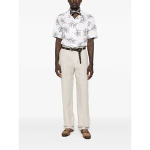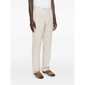 Men > Clothing > Pants > Pants Beige pants with belt loops, front button fastening, front pleats, and two side welt pockets.