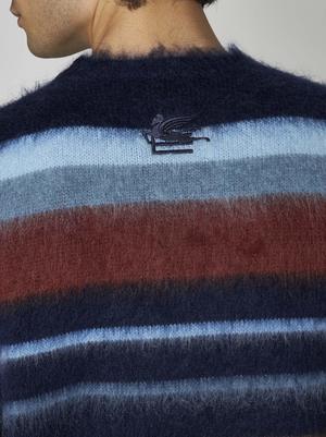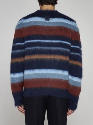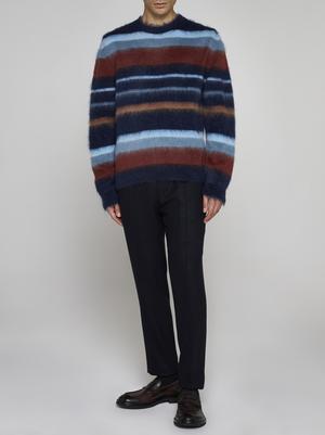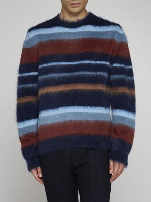This sweater is crafted from a blend of 67% mohair, 28% nylon, and 5% wool.