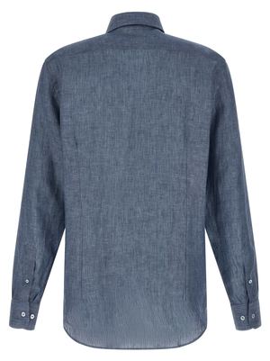 Men > Clothing > Shirts Mlange linen shirt with tone-on-tone "Pegaso" embroidered logo2, front button closure, and long cuffed sleeves. Composition: 100% linen.