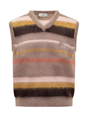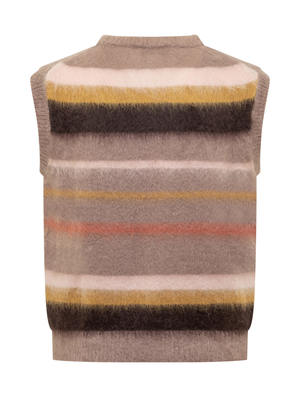 This vest features a stripe pattern and is crafted from a blend of 67% nylon, 28% wool, and 5% mohair.