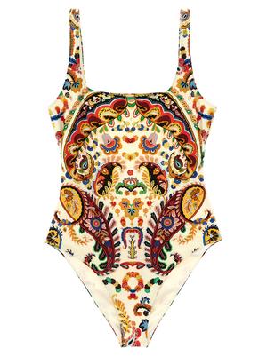 Women > Clothing > Swimwear One-piece swimsuit in all-over floral Paisley print technical fabric, with a front square neckline, wide round back neckline, and medium coverage. Composition: 72% polyamide, 28% elastane.