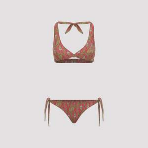 Women > Clothing > Swimwear > Bikinis Etro Paisley Foliage green polyamide bikini. Crafted from green and pink tech fabric with an all-over signature Paisley Foliage print, the bra features a halterneck with self-tie fastening at the back of the collar and a hook fastening at the back. The briefs feature a low waist and self-tie fastening on the sides.