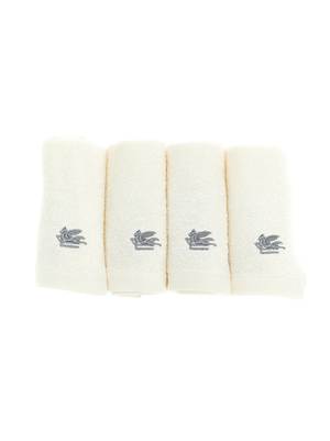 Homeware > Textiles & Linens > Bath Linens Set of 4 '7Plies' cotton terry washcloths with logo2 embroidery, and a washing basket with logo2 embroidery and patterned cotton piping. Composition: 100% cotton.
