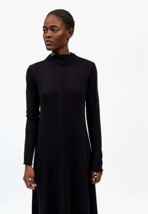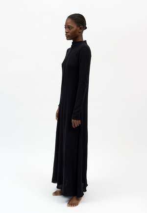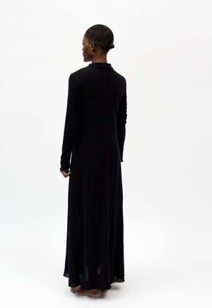 This long knitted dress, crafted from 96% organic cotton, offers both sustainability and simplicity. Designed with a regular fit, it provides comfort for any occasion. The dress features a half-high collar, adding a sophisticated touch to its classic design. The soft, breathable organic cotton ensures all-day comfort, while the intricate knitted patterns bring subtle texture. With its long sleeves and flowing silhouette, this dress is a versatile addition to any wardrobe. COMPOSITION 96% Organic Cotton, 4% Polyamide SIZE & FIT Model is 170 cm / 5'6" and is wearing size S. ABOUT .BLACK TO GREY .blacktogrey designs and manufactures timeless garments from recycled clothes and sustainable fabrics, supporting sustainable and circular fashion practices.
